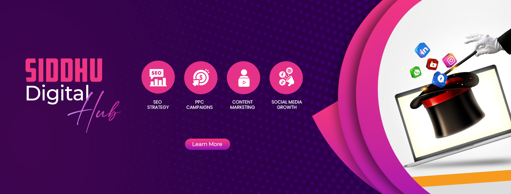 Siddhu Digital Hub is a creative digital marketing agency that helps businesses grow, connect, and succeed online. We provide smart marketing strategies, eye-catching designs, and advanced digital solutions that turn ideas into real results.